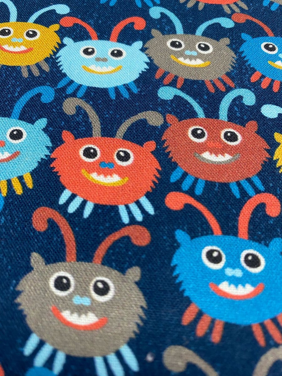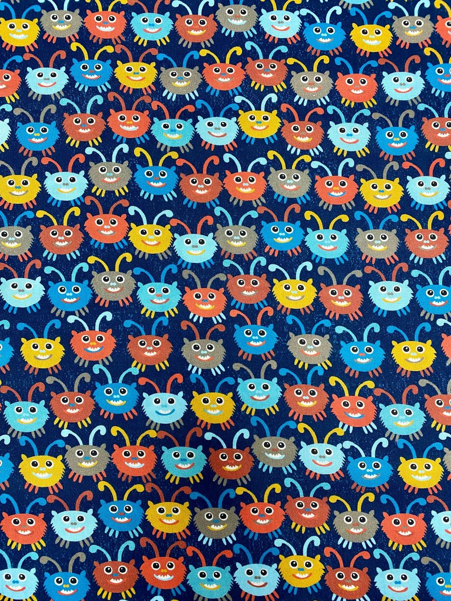 Estampa rosto de monstros com fundo azul escuro.