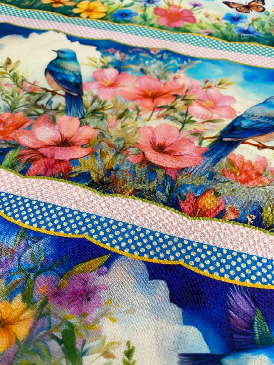Barra Borboletas, Pássaros e Flores 100% algodão