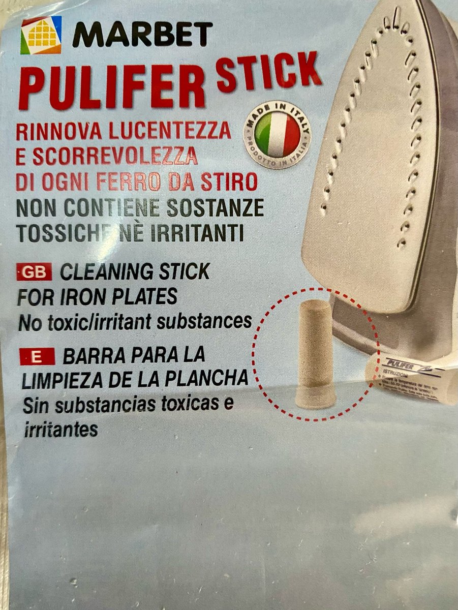 Ligue o ferro em temperatura média, aplique a barra diretamente na base (com cuidado), e limpe com um pano seco. Pronto! Em poucos segundos, seu ferro estará limpo e como novo.