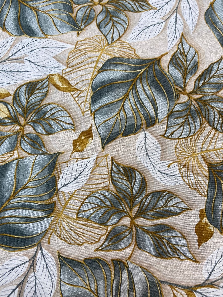 Loneta Estampa de Folhas Verde e detalhe dourado