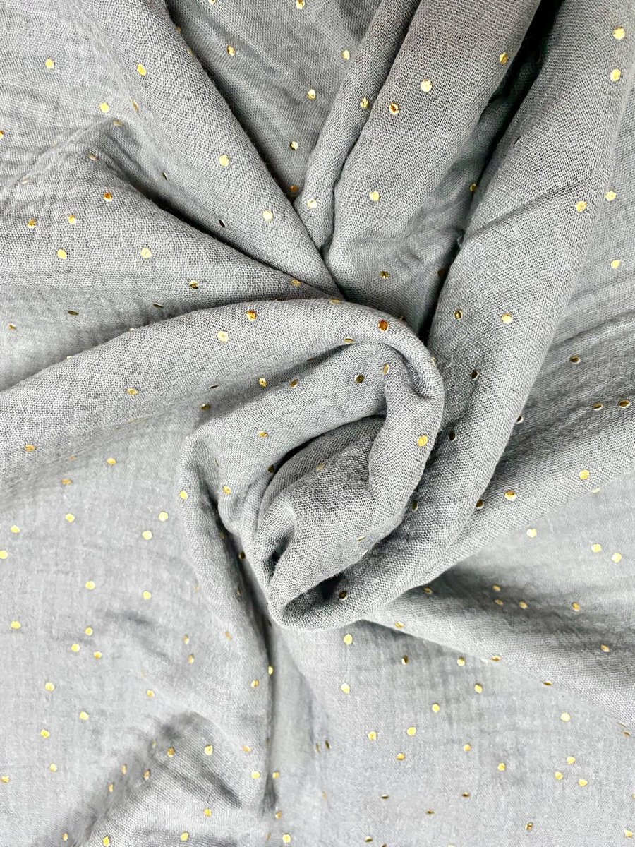 Mousseline Cinza com pintas douradas