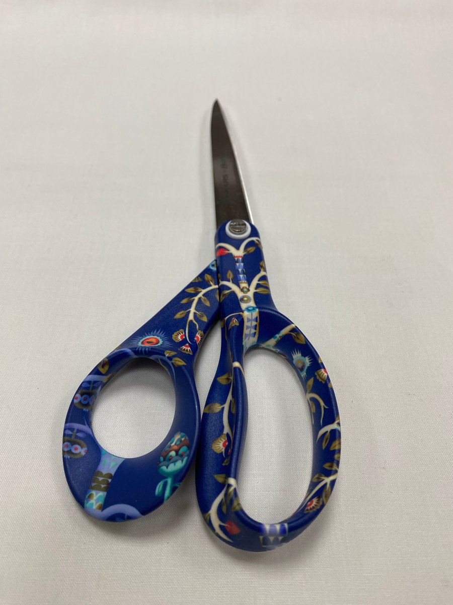 Tesoura Azul com flores desenhada