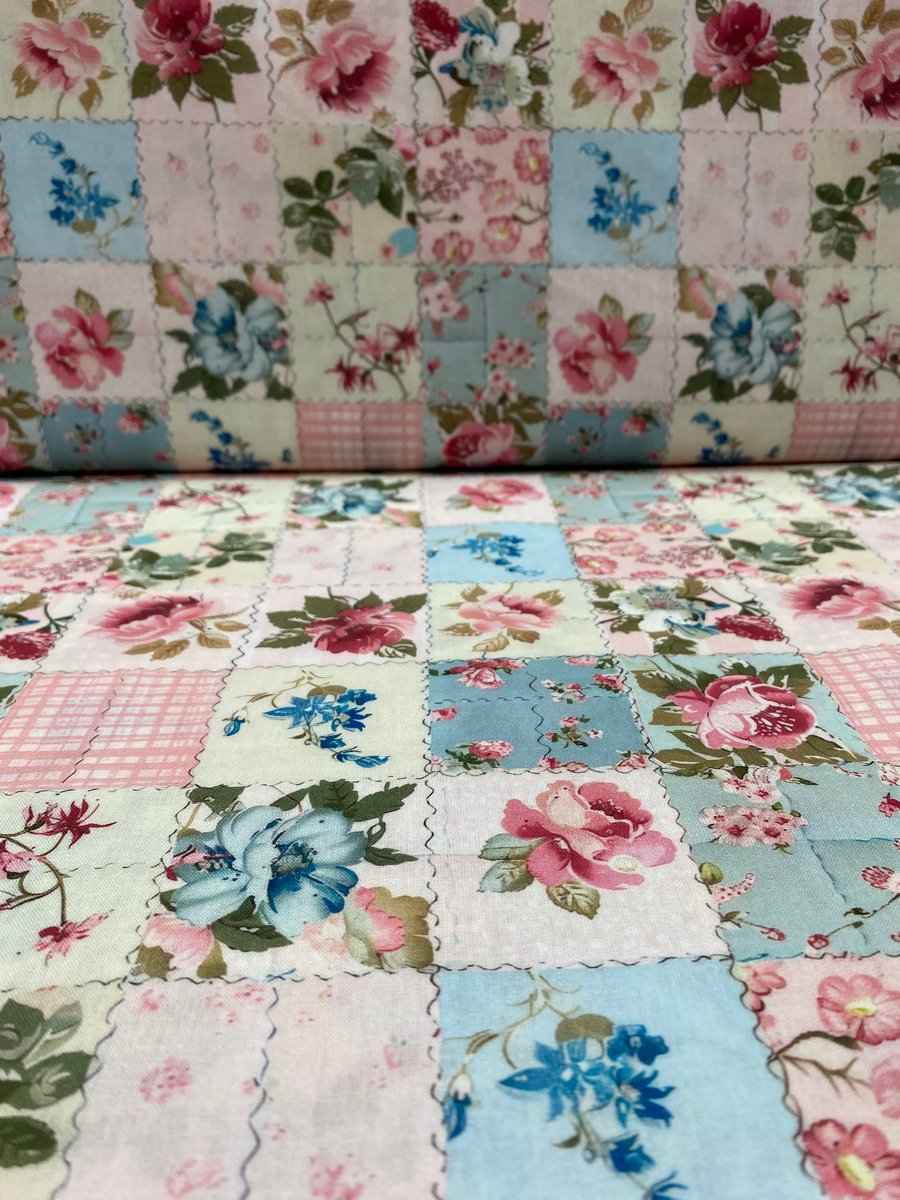 Este lindo tecido combina o charme do estilo patchwork com estampas florais delicadas, em tons suaves que trazem um toque vintage e romântico. Ideal para projetos criativos como colchas, almofadas, mantas, toalhas de mesa e artesanatos em geral.