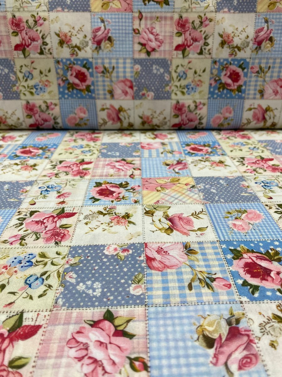 Este lindo tecido combina o charme do estilo patchwork com estampas florais delicadas, em tons suaves que trazem um toque vintage e romântico. Ideal para projetos criativos como colchas, almofadas, mantas, toalhas de mesa e artesanatos em geral.